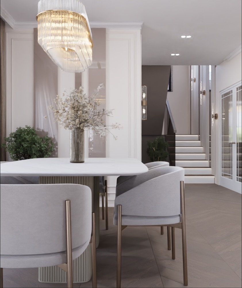 De la alegerea unui corp de iluminat până la ultimul obiect decorativ, fiecare detaliu este integrat în conceptul general al spațiului.